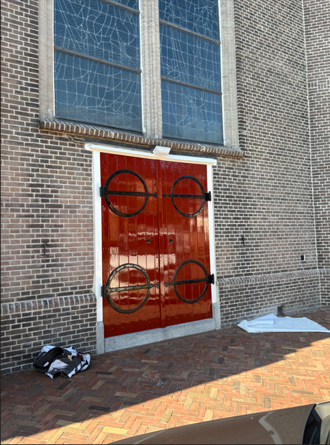 Het heeft even geduurd maar vandaag kon de schilder eindelijk het buitenschilderwerk afronden. Hiermee is de 2e fase van de gevelrenovatie, die begin september van vorig jaar (2025) is gestart, helemaal afgerond. Voor iedereen die langs de kerk wandelt of fietst is goed zichtbaar hoe de zijgevel is opgeknapt, mede dankzij de donaties van de Volendammer bedrijven en inwoners.