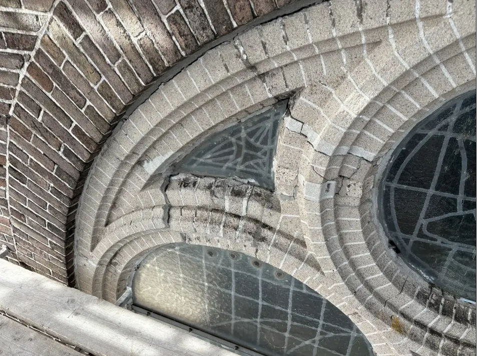 We zijn volop bezig met het voeg- en herstelwerk aan de zeezijde van de Vincentiuskerk. Op bijgevoegde foto’s kunt u zien in welke zeer slechte staat het verkeerde en hoe broodnodig het is dat dit gebeurt.