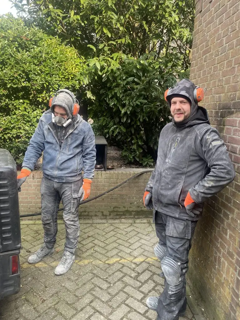 De muren van de toiletgroep zijn ook gelijk schoongemaakt met de hoge drukspuit.