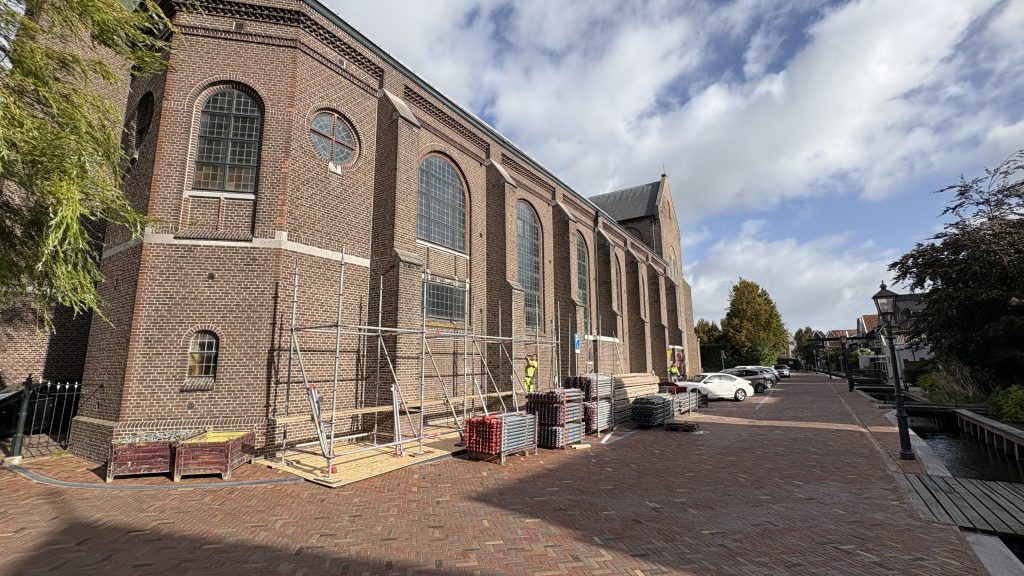 Maandag 15 september wordt gestart met het opbouwen van de steiger aan de zijgevel van de Vincentius – IJsselmeerzijde.
